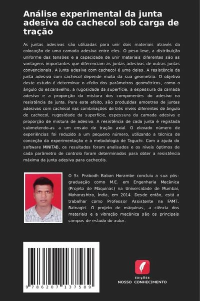 As juntas adesivas são utilizadas para unir dois materiais através da colocação de uma camada adesiva entre eles. O peso leve, a distribuição uniforme das tensões e a capacidade de unir materiais diferentes são as vantagens importantes que diferenciam as juntas adesivas de outras juntas convencionais. A junta adesiva com cachecol é uma delas. A resistência da junta adesiva com cachecol depende muito da sua geometria. O objetivo deste estudo é determinar o efeito dos parâmetros geométricos, como o ângulo do escaravelho, a rugosidade da superfície, a espessura da camada adesiva e a proporção da mistura dos componentes do adesivo na resistência da junta. Para este efeito, são produzidas amostras de juntas adesivas com cachecol nas combinações de três níveis diferentes de ângulo de cachecol, rugosidade da superfície, espessura da camada adesiva e proporção de mistura de adesivo. A resistência de cada junta é registada submetendo-as a um ensaio de tração axial. O elevado número de experiências foi reduzido a um pequeno número, utilizando a técnica de conceção da experimentação e a metodologia de Taguchi. Com a ajuda do software MINITAB, os resultados foram analisados e os níveis óptimos de cada parâmetro de controlo foram determinados para obter a resistência máxima da junta adesiva para cachecóis.