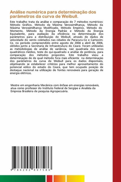 Este trabalho trata da análise e comparação de 7 métodos numéricos: Método Gráfico, Método da Máxima Verossimilhança, Método da Máxima Verossimilhança Modificado, Método Empírico, Método do Momento, Método da Energia Padrão e Método da Energia Equivalente, para avaliação da eficiência na determinação dos parâmetros para a distribuição de Weibull, através de dados de velocidade do vento coletados nas cidades de Paracuru-Ce e Camocim-Ce, no período compreendido entre agosto de 2004 a abril de 2006, obtidos junto a Secretaria de Infraestrutura do Ceará. Foram utilizadas as metodologias de análise de variância, raiz quadrada dos erros quadráticos médios, teste do qui-quadrado e análise de potência, para comparação dos métodos propostos. Este trabalho visou a determinação de de qual método fora mais eficiente na determinação dos parâmetros da curva de Weibull para os dados disponíveis, objetivando se estabelecer critérios para melhor aproveitamento do potencial eólico do estado do Ceará, que tem ocupado posição de destaque nacional na utilização de fontes renováveis para geração de energia elétricas.