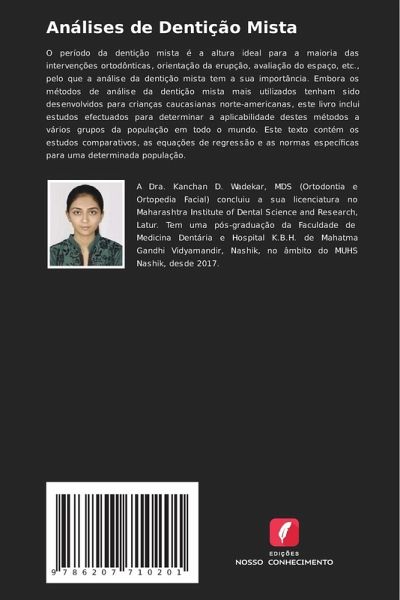 O período da dentição mista é a altura ideal para a maioria das intervenções ortodônticas, orientação da erupção, avaliação do espaço, etc., pelo que a análise da dentição mista tem a sua importância. Embora os métodos de análise da dentição mista mais utilizados tenham sido desenvolvidos para crianças caucasianas norte-americanas, este livro inclui estudos efectuados para determinar a aplicabilidade destes métodos a vários grupos da população em todo o mundo. Este texto contém os estudos comparativos, as equações de regressão e as normas específicas para uma determinada população.