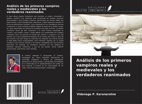 El autor desea imponer limitaciones que restrinjan su análisis únicamente a aquellos vampiros cuya existencia esté corroborada por pruebas históricas documentadas y otras pruebas empíricas demostradas por fuentes fiables que hayan llevado a cabo investigaciones exhaustivas y hayan elaborado estudios en forma de publicaciones impresas. Como exponente de una investigación discreta y meticulosa, el autor ha tenido el debido cuidado de excluir de su análisis incluso los casos denunciados de vampirismo verdadero que rozan la ficción. La palabra 'revenant' deriva del latín 'revenans' y el verbo francés relacionado es 'revenir', que significa 'volver'. Quizás debido a un malentendido de la palabra 'revenant' como una persona no muerta que 'vuelve' o 'regresa' a su vida anterior con el único propósito de vengarse de los autores del crimen o, dicho de otra manera, solo para vengar su asesinato, los revenants que vivieron durante la Edad Media fueron estigmatizados como individuos violentos por su propia voluntad o como muertos vivientes o no muertos, manipulados por una animación demoníaca. Sin embargo, los verdaderos revenants son una categoría de individuos bastante inofensivos y que tal vez poseen ciertos poderes paranormales, tanto físicos como mentales.
