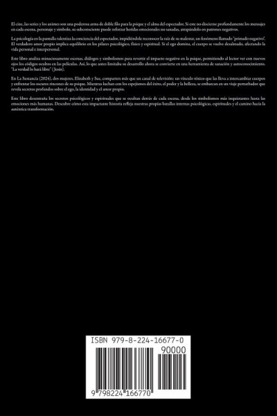 La psicología y la espiritualidad en películas, series y animes impacta profundamente, potenciando patrones negativos en quienes no los discernirán. Este libro analiza La Sustancia (2024), explorando sus aspectos ocultos espirituales y psicológicos, revelando cómo su simbolismo y personajes se pueden revertir para sanar al espectador, transformando su percepción y promoviendo el crecimiento personal hacia el verdadero amor propio.
