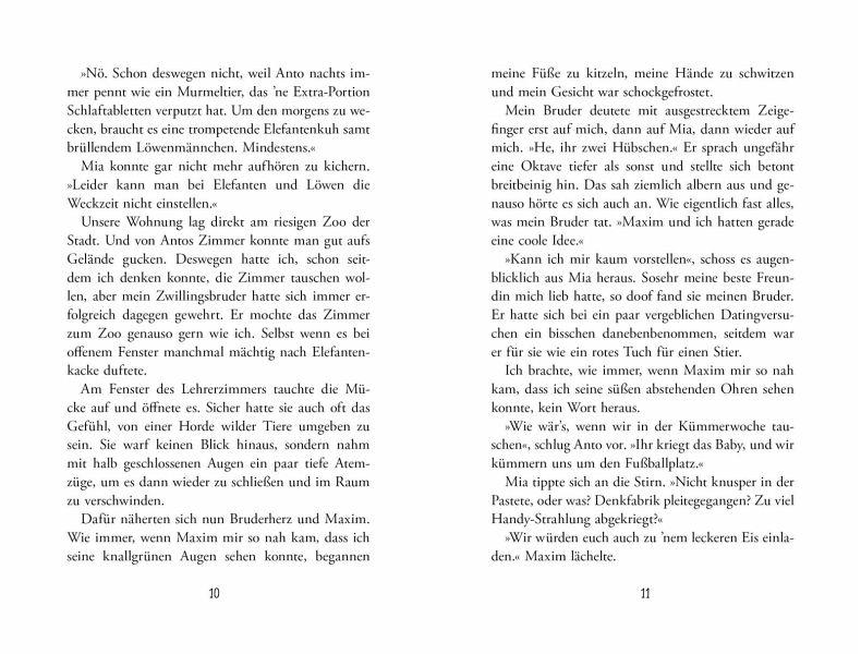 Anna und Anto Anders sind Zwillinge - und gehen sich schrecklich auf die Nerven. Die Phase in Mamas Bauch mitgerechnet sind sie nun schon 15 Jahre gezwungen, ihr Leben zu teilen. Als Anna immer häufiger dieses Kribbeln verspürt, wenn sie Antos besten Freund Maxim sieht, spitzt sich die Lage zu. Gerne würde sie mehr Zeit mit Maxim verbringen. Alleine. Ohne Anto. Und da passiert es plötzlich! Anna steckt im Körper ihres Bruders! Und Anto in dem seiner Schwester. Gab es vorher schon viel Verwirrung, geht's jetzt erst so richtig los. Überraschend, witzig und mit Tiefgang.