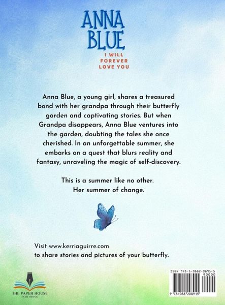 Anna Blue, a young girl, shares a treasured bond with her grandpa through their butterfly garden and captivating stories. But when Grandpa disappears, Anna Blue ventures into the garden, doubting the tales she once cherished. In an unforgettable summer, she embarks on a quest that blurs reality and fantasy, unraveling the magic of self-discovery. This is a summer like no other. Her summer of change.