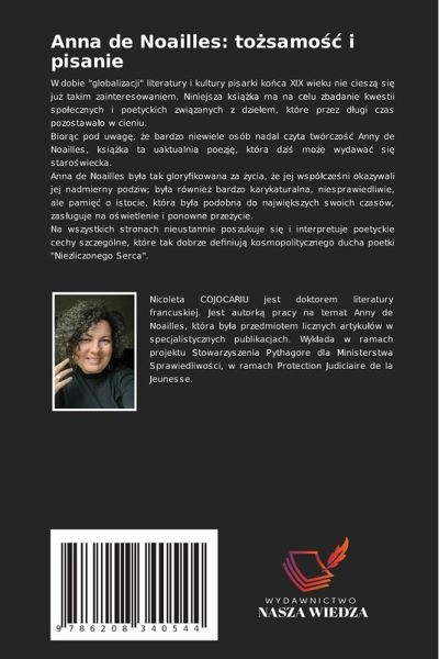 W dobie "globalizacji" literatury i kultury pisarki ko¿ca XIX wieku nie ciesz¿ si¿ ju¿ takim zainteresowaniem. Niniejsza ksi¿¿ka ma na celu zbadanie kwestii spo¿ecznych i poetyckich zwi¿zanych z dzie¿em, które przez d¿ugi czas pozostawäo w cieniu.Bior¿c pod uwag¿, ¿e bardzo niewiele osób nadal czyta twórczo¿¿ Anny de Noailles, ksi¿¿ka ta uaktualnia poezj¿, która dzi¿ mo¿e wydawä si¿ staro¿wiecka.Anna de Noailles by¿a tak gloryfikowana za ¿ycia, ¿e jej wspó¿cze¿ni okazywali jej nadmierny podziw; by¿a równie¿ bardzo karykaturalna, niesprawiedliwie, ale pami¿¿ o istocie, która by¿a podobna do najwi¿kszych swoich czasów, zas¿uguje na o¿wietlenie i ponowne prze¿ycie.Na wszystkich stronach nieustannie poszukuje si¿ i interpretuje poetyckie cechy szczególne, które tak dobrze definiuj¿ kosmopolitycznego ducha poetki "Niezliczonego Serca".