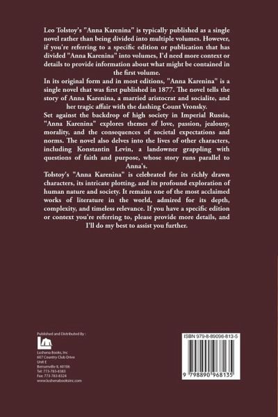 Anna Karenina, one of the great masterpieces of Leo Tolstoy, is a timeless classic of love, family, and tragedy. Set in Imperial Russia, the novel tells the story of Anna Karenina, a passionate and independent woman who defies the conventions of her time by leaving her loveless marriage and engaging in an illicit affair with the dashing Count Vronsky. Along with this captivating love story, Tolstoy paints a vivid picture of the lives of 19th century Russian nobility, exploring themes of morality, redemption, and the power of fate. Through its unforgettable characters and gripping plot, Anna Karenina offers an absorbing and unique look into the Russian society of the time. With its timeless appeal and immortal characters, Anna Karenina is a must-read for all fans of classic literature. This edition is based on the Constance Garnett translation originally published in 1901 and in print ever since. Leo Tolstoy (1828-1910) was a Russian author who wrote novels and plays, and is widely considered one of the greatest authors of all time. His works include War and Peace, Anna Karenina, and The Death of Ivan Ilyich. Tolstoy was born in the Tula Province of Russia, and was educated at the University of Kazan. After graduating, he worked as a teacher and in the army before embarking on his writing career. His first published work was Childhood, a semi-autobiographical novel, in 1852. Tolstoy is known for his philosophical and spiritual outlook. His works often explore questions of morality, justice, and the meaning of life. His later works focus on religious issues, such as non-violence, and his essays on Christianity and anarchism had a profound influence on Mahatma Gandhi and other political activists. In addition to his literary career, Tolstoy was a public figure who actively promoted social reform. He sought to improve the conditions of peasants and the working class, and proposed a system of education and land reform. He also became a vocal advocate of vegetarianism and animal rights. Tolstoy's works have been translated into more than 50 languages, and remain popular today. His influence in literature, politics, and philosophy continues to be felt around the world.