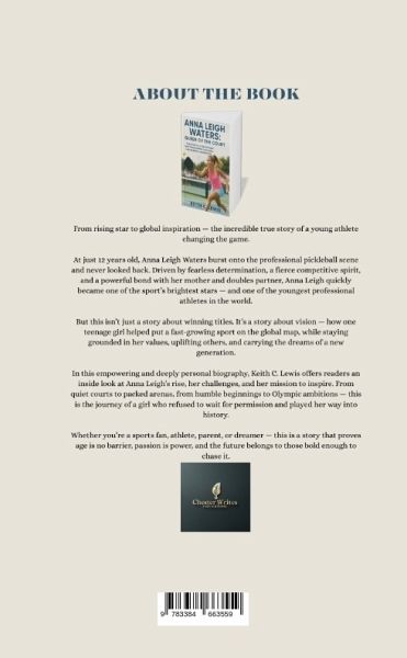 This biography traces Anna Leigh Waters' journey from a homeschooled Florida girl with a paddle in her hand to a world-renowned teenage athlete at the forefront of pickleball's explosion in popularity.Through 15 richly detailed chapters and a powerful conclusion, the book explores: Her early beginnings: Playing pickleball with her mom during a hurricane evacuation - and discovering a life-changing passion. Her rapid rise: Becoming a pro at age 12 and shattering expectations across age and gender lines. Her challenges: Managing pressure, expectations, and fame while still growing up. Her leadership: Inspiring the next generation and using her platform to promote inclusion, discipline, and global sport expansion. The sport itself: How Anna Leigh became a symbol of pickleball's potential to go Olympic, reach international audiences, and become a respected global game