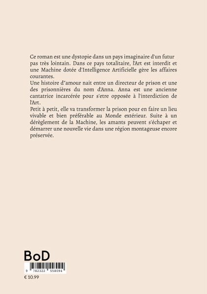 Ce roman est une dystopie dans un pays imaginaire d'un futur pas très lointain. Dans ce pays totalitaire, l'Art est interdit et une Machine dotée d'Intelligence Artificielle gère les affaires courantes. Une histoire d"amour nait entre un directeur de prison et une des prisonnières du nom d'Anna. Anna est une ancienne cantatrice incarcérée pour s'etre opposée à l'interdiction de l'Art. Petit à petit, elle va transformer la prison pour en faire un lieu vivable et bien préférable au Monde extérieur. Suite à un dérèglement de la Machine, les amants peuvent s'échaper et démarrer une nouvelle vie dans une région montageuse encore préservée.