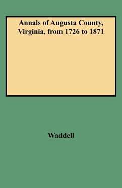 This is the standard history of Augusta County, Virginia, which at one time extended from the Blue Ridge Mountains to the Mississippi River, east and west, and from the Great Lakes on the north to the northern boundary of the present state of Tennessee on the south. Waddell arranges Augusta County's history according to its political milestones, thus we have chapters on the county's first settlement, first courts, Indian wars, Augusta County in the Revolution, and, of course, a number of chapters on Augusta County in the Civil War. Genealogists will most appreciate the discussion of the migration trail out of Augusta County and, interspersed throughout the work, genealogical and biographical sketches of the following Augusta County families: Adams, Alexander, Anderson, Baxter, Bell, Blackburn, Bowyer, Breckenridge, Brown, Cameron, Campbell, Christian, Craig, Crawford, Cummings, Cunningham, Doak, Fleming, Floyd, Gamble, Graham, Hamilton, Harrison, Hays, Jones, Lyle, McClanahan, McDowell, McKee, McLaughlin, McNutt, Madison, Mathews, Moffett, Moore, Nelson, Poage, Preston, Smith, Stuart, Tate, Trimble, Waddell, Warwick, and Wilson.