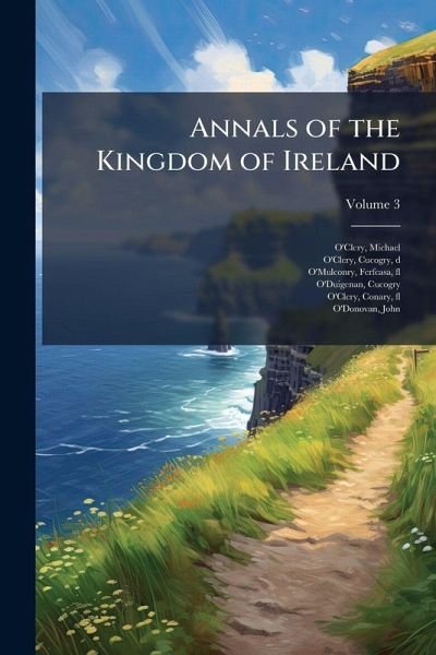 "Annals of the Kingdom of Ireland, Volume 3" is a meticulous historical record compiled in the early 17th century and translated and annotated in the 19th century. This volume continues the detailed chronicle of Irish events, offering invaluable insights into the political, social, and cultural life of Ireland. Authored by Michael O'Clery and other distinguished scholars, these annals, also known as the "Annals of the Four Masters," provide a comprehensive account of Irish history from ancient times up to the early 1600s. This volume includes detailed entries on battles, notable figures, and significant events, making it an essential resource for historians, genealogists, and anyone interested in Irish heritage. Enhanced by the scholarly work of John O'Donovan, this edition preserves the original text while providing necessary context and interpretation for modern readers. "Annals of the Kingdom of Ireland" remains a cornerstone of Irish historical literature, offering a rich and enduring glimpse into the past. This work has been selected by scholars as being culturally important, and is part of the knowledge base of civilization as we know it. This work was reproduced from the original artifact, and remains as true to the original work as possible. Therefore, you will see the original copyright references, library stamps (as most of these works have been housed in our most important libraries around the world), and other notations in the work. This work is in the public domain in the United States of America, and possibly other nations. Within the United States, you may freely copy and distribute this work, as no entity (individual or corporate) has a copyright on the body of the work. As a reproduction of a historical artifact, this work may contain missing or blurred pages, poor pictures, errant marks, etc. Scholars believe, and we concur, that this work is important enough to be preserved, reproduced, and made generally available to the public. We appreciate your support of the preservation process, and thank you for being an important part of keeping this knowledge alive and relevant.