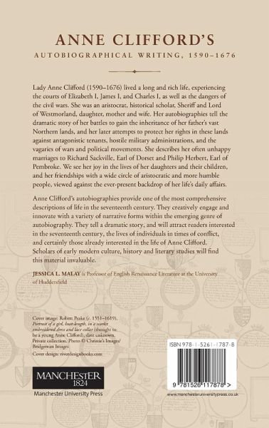 Anne Clifford describes the dramatic and tragic events of her life in the seventeenth century. Of how she danced in the masques of Inigo Jones, experienced both joy and abuse in her two marriages, lost and gained an inheritance, and successfully defended her rights against kings and armies. All told in rich detail amidst the backdrop of daily life.