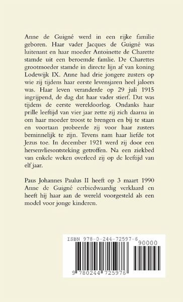 Anne de Guigné werd in een rijke familie geboren. Haar vader Jacques de Guigné was luitenant en haar moeder Antoinette de Charette stamde uit een beroemde familie. De Charettes grootmoeder stamde in directe lijn af van koning Lodewijk IX. Anne had drie jongere zusters op wie zij tijdens haar eerste levensjaren heel jaloers was. Haar leven veranderde op 29 juli 1915 ingrijpend, de dag dat haar vader stierf. Dat was tijdens de eerste wereldoorlog. Ondanks haar prille leeftijd van vier jaar zette zij zich daarna in om haar moeder troost te brengen en bij te staan en voortaan probeerde zij voor haar zusters beminnelijk te zijn. Tevens nam haar liefde tot Jezus toe. In december 1921 werd zij door een hersenvliesontsteking getroffen. Na een ziekbed van enkele weken overleed zij op de leeftijd van elf jaar. Paus Johannes Paulus II heeft op 3 maart 1990 Anne de Guigné eerbiedwaardig verklaard en heeft hij haar aan de wereld voorgesteld als een model voor jonge kinderen.
