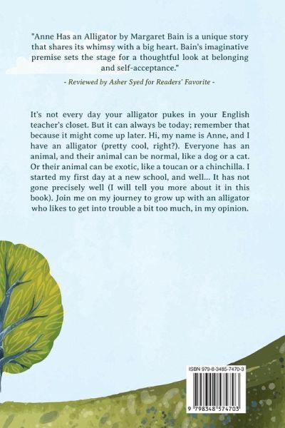 When you are born in Anne's world, The Stork gives each baby an animal. This animal grows up with you and is your companion for life, even if owning that animal can be... challenging. Anne is also starting at a new school, where she discovers that other people also have unique pets, like toucans, peacocks, chinchillas, blue baboons, and more! With so many types of animals, there is a helpful zookeeper who helps Anne learn how to take better care of her alligator while also leading a healthy and fulfilled life in and out of school. There are jokes, funny stories, love, a bully, a little bit of math, and even some puke (sorry). There is a little bit for everyone in this book series, but one thing to keep in mind: If you had an animal that grew up with you, what would it be and why? Think about it; it'll help you figure out where you might fit into Anne's world or even your own.