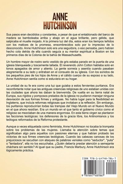 Si quiere descubrir la fascinante vida de Anne Hutchinson, siga leyendo ... Sus pasos eran decididos y constantes, a pesar de que el entablonado del barco de madera se bamboleaba arriba y abajo en el agua brillante, pero gélida, que salpicaba el muelle mojado. A la primera luz del día, estos eran los tiempos teñidos con los matices de la promesa, ensombrecidos solo por lo impreciso de lo desconocido. Anne Hutchinson solo era una seguidora, o eso pensaba, pero habían hecho cola detrás de ella cuando seguía a su mentor espiritual a Boston en los primeros días de la Colonia de la bahía de Massachusetts. Este libro cuenta la historia de la vida de Anne Hutchinson, una vida con una misión. No se cumple la secuencia cronológica estricta porque el contenido del mensaje de Hutchinson es más temático. Las personas en su vida no aparecían como en las instantáneas, sino que seguían apareciendo una y otra vez. Por lo tanto, el libro está dividido en secciones para que sea más fácil para el lector que vive en un momento y lugar diferentes. En Anne Hutchinson: Una Fascinante Guía para la Líder Puritana en el Massachusetts Colonial que es considerada una de las primeras feministas estadounidenses, descubrirá temas como:amificaciones de la Reforma La Hija de su Padre Religión y Rivalidades en una Tierra Inhóspita Abundan las Controversias El Juicio de Hutchinson Después del Juicio ¿Y en qué derivó? ¡Y mucho, mucho más! ¡Obtenga este libro ahora para aprender más sobre Anne Hutchinson!