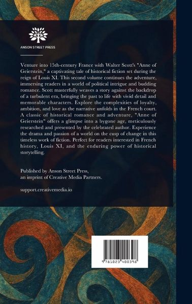 Venture into 15th-century France with Walter Scott's "Anne of Geierstein," a captivating tale of historical fiction set during the reign of Louis XI. This second volume continues the adventure, immersing readers in a world of political intrigue and budding romance. Scott masterfully weaves a story against the backdrop of a turbulent era, bringing the past to life with vivid detail and memorable characters. Explore the complexities of loyalty, ambition, and love as the narrative unfolds in the French court. A classic of historical romance and adventure, "Anne of Geierstein" offers a glimpse into a bygone age, meticulously researched and presented by the celebrated author. Experience the drama and passion of a world on the cusp of change in this timeless work of fiction. Perfect for readers interested in French history, Louis XI, and the enduring power of historical storytelling. This work has been selected by scholars as being culturally important, and is part of the knowledge base of civilization as we know it. This work is in the public domain in the United States of America, and possibly other nations. Within the United States, you may freely copy and distribute this work, as no entity (individual or corporate) has a copyright on the body of the work. Scholars believe, and we concur, that this work is important enough to be preserved, reproduced, and made generally available to the public. We appreciate your support of the preservation process, and thank you for being an important part of keeping this knowledge alive and relevant.