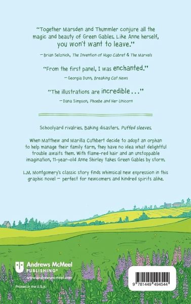 The spirit of Anne is alive and well in Mariah Marsden's crisp adaptation, and it's a thrill to watch as the beloved orphan rushes headlong through Brenna Thummler's heavenly landscapes. Together Marsden and Thummler conjure all the magic and beauty of Green Gables. Like Anne herself, you won't want to leave. - Brian Selznick, author/illustrator of "The Invention of Hugo Cabret" and "The Marvels" The magic of L.M. Montgomery's treasured classic is reimagined in a whimsically-illustrated graphic novel adaptation perfect for newcomers and kindred spirits alike. When Matthew and Marilla Cuthbert decide to adopt an orphan who can help manage their family farm, they have no idea what delightful trouble awaits them. With flame-red hair and an unstoppable imagination, 11-year-old Anne Shirley takes Green Gables by storm. Anne's misadventures bring a little romance to the lives of everyone she meets: her bosom friend, Diana Barry; the town gossip, Mrs. Lynde; and that infuriating tease, Gilbert Blythe. From triumphs and thrills to the depths of despair, Anne turns each everyday moment into something extraordinary.