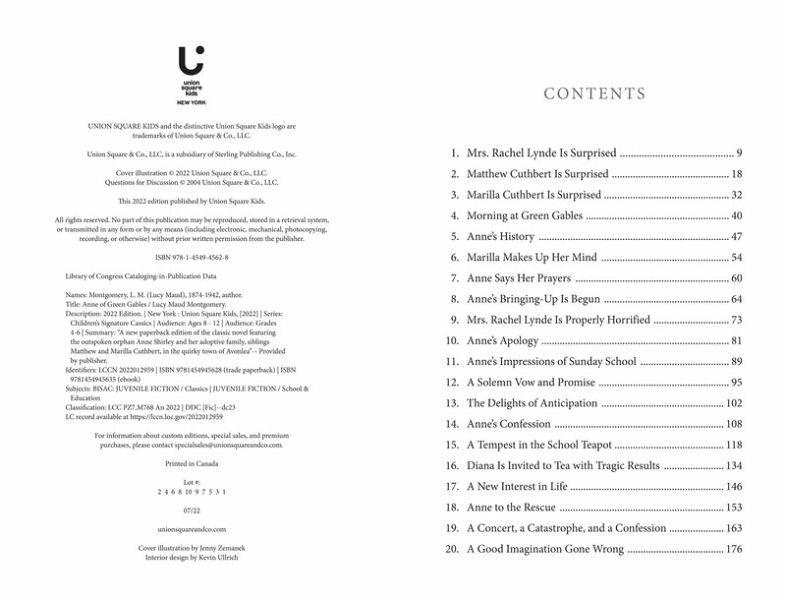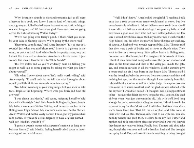 Lucy Maude Montgomery (1874–1942) was born on Prince Edward Island, Canada, the setting for Anne of Green Gables. She left to attend college but returned to Prince Edward Island to teach. In 1911, she married the Reverend Ewan MacDonald. Anne ofGreen Gables, the first in a series of “Anne” books by Montgomery, was published in 1908 to immediate success and continues to be a perennial favorite.