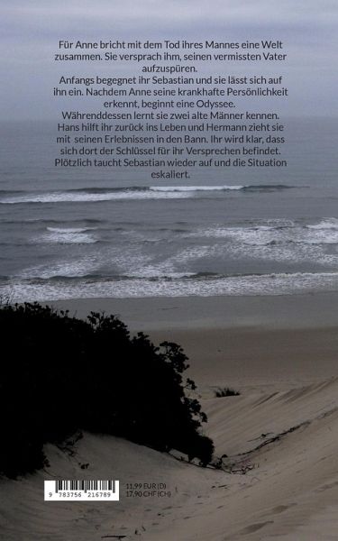 Für Anne bricht mit dem Tod ihres Mannes eine Welt zusammen. Sie versprach ihm, seinen vermissten Vater aufzuspüren. Anfangs begegnet ihr Sebastian und sie lässt sich auf ihn ein. Nachdem Anne seine krankhafte Persönlichkeit erkennt, beginnt eine Odyssee. Währenddessen lernt sie zwei alte Männer kennen. Hans hilft ihr zurück ins Leben und Hermann zieht sie mit seinen Erlebnissen in den Bann. Ihr wird klar, dass sich dort der Schlüssel für ihr Versprechen befindet.Plötzlich taucht Sebastian wieder auf und die Situation eskaliert.