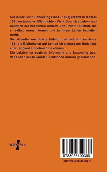 Der Autor Levin Schücking (1814 - 1883) erzählt in diesem 1861 erstmals veröffentlichten Werk über das Leben und Schaffen der bekannten Annette von Droste Hülshoff, die er selbst kennen lernen und in ihrem Leben begleiten durfte.