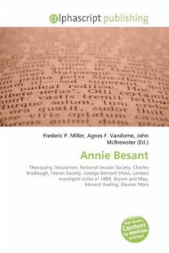 Annie Besant. Theosophy, Secularism, National Secular Society, Charles Bradlaugh, Fabian Society, George Bernard Shaw, London matchgirls strike of 1888, Bryant and May, Edward Aveling, Eleanor Marx, Henry Hyndman, Socialist League (UK, 1885), London School Board, Co- Freemasonry, Theosophical Society, Theosophical Society Adyar, Home Rule Movement, Occult Chemistry (book)
