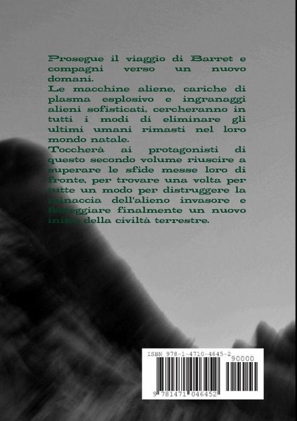 Secondo capitolo della trilogia di fantascienza di Valerio Valvo. Prosegue il viaggio di Barret e compagni verso un nuovo domani. Le macchine aliene, cariche di plasma esplosivo e ingranaggi alieni sofisticati, cercheranno in tutti i modi di eliminare gli ultimi umani rimasti nel loro mondo natale. Toccherà ai protagonisti di questo secondo volume riuscire a superare le sfide messe loro di fronte, per trovare una volta per tutte un modo per distruggere la minaccia dell'alieno invasore e festeggiare finalmente un nuovo inizio della civiltà terrestre.