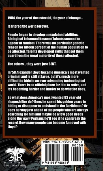 1954, the year of the asteroid, the year of change... It altered the world forever. People began to develop unexplained abilities. Biological Enhanced Nascent Talents seemed to appear at random. There was no particular genetic reason for fifteen percent of the human population to be affected. Talents developed skills that set them apart from the great majority of those affected. The others... they were just BENT. In '58 Alexander Lloyd became America's most wanted criminal and is still at large, but it's much more difficult to hide in an ever-advancing technological world. There is no official place for him to retire, and it's becoming harder and harder to do what he does. So what does America's most wanted 93 year old shapeshifter do? Does he spend his golden years in hiding or disappear to an island in the Caribbean? Or does he stay just ahead of the people who are always searching for him and maybe do a few good deeds along the way? Perhaps he'll see if he can break the record. How many people can become Annoyed with Lloyd?