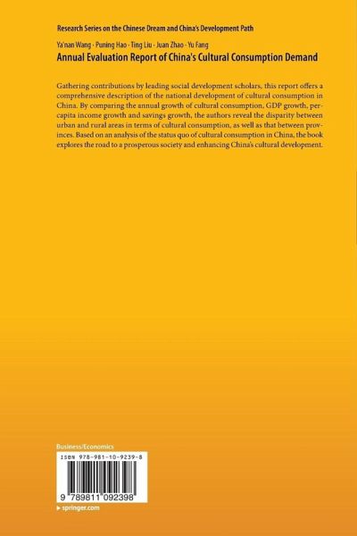 Gathering contributions by leading social development scholars, this report offers a comprehensive description of the national development of cultural consumption in China. By comparing the annual growth of cultural consumption, GDP growth, per-capita income growth and savings growth, the authors reveal the disparity between urban and rural areas in terms of cultural consumption, as well as that between provinces. Based on an analysis of the status quo of cultural consumption in China, the book explores the road to a prosperous society and enhancing China's cultural development.