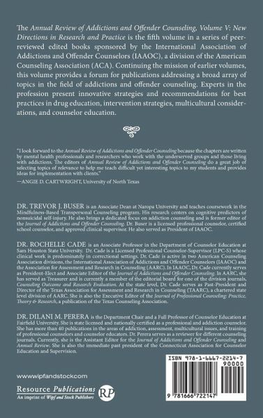 Annual Review of Addictions and Offender Counseling, Volume V: New Directions in Research and Practice is the fifth volume in a series of peer-reviewed edited books sponsored by the International Association of Addictions and Offender Counselors (IAAOC), a division of the American Counseling Association (ACA). Continuing the mission of earlier volumes, this volume provides a forum for publications addressing a broad array of topics in the field of addictions and offender counseling. Experts in the profession present innovative strategies and recommendations for best practices in drug education, intervention strategies, multicultural considerations, and counselor education.