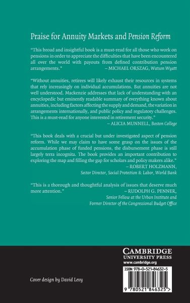 This 2006 book treats two vital public policy issues: how should distributions from individual accounts be regulated, and how can the market for private annuities function better? It provides a comprehensive survey of the issues that arise when contributors to individual accounts become eligible for distributions. It also addresses the questions of whether annuitization or other restrictions on distributions should be mandatory, and if so, can the provision of annuities be privatized? Its analytical framework is applicable to a broad range of countries. Given the diminishing importance of…mehr
