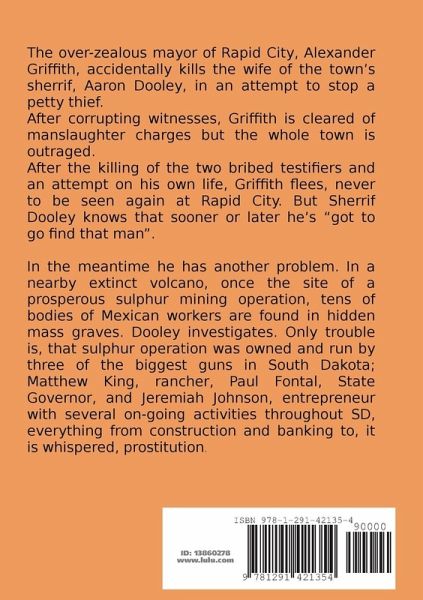 The over-zealous mayor of Rapid City, Alexander Griffith, accidentally kills the wife of the town's sherrif, Aaron Dooley, in an attempt to stop a petty thief. After corrupting witnesses, Griffith is cleared of manslaughter charges but the whole town is outraged. After the killing of the two bribed testifiers and an attempt on his own life, Griffith flees, never to be seen again at Rapid City. But Sherrif Dooley knows that sooner or later he's "got to go find that man". In the meantime he has another problem. In a nearby extinct volcano, once the site of a prosperous sulphur mining operation, tens of bodies of Mexican workers are found in hidden mass graves. Dooley investigates. Only trouble is, that sulphur operation was owned and run by three of the biggest guns in South Dakota; Matthew King, rancher, Paul Fontal, State Governor, and Jeremiah Johnson, entrepreneur with several on-going activities throughout SD, everything from construction to banking and, it is whispered, prostitution.