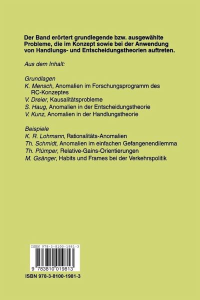 Der vorliegende Band mit dem Titel "Anomalien in Handlungs-und Entschei dungstheorien" ist u. a. das Resultat der dritten Tagung des Arbeitskreises "Handlungs-und Entscheidungstheorie" der "Sektion Politische Theorie und Ideengeschichte" innerhalb der Deutschen Vereinigung rur Politische Wissen schaft (DVPW). Während sich die ersten beiden Tagungen mit Grundlagen und zentralen politikwissenschaftlichen Anwendungen handlungs- und entschei dungstheoretischer Ansätze beschäftigten (Druwe, Kunz, Hg. 1994, 1996), stehen in diesem Band ausgewählte Probleme oder Anomalien im Mittelpunkt methodologischer, theoretischer und anwendungsorientierter Betrachtungen. Der Anomaliebegriff wurde von dem amerikanischen Wissenschaftshistoriker Thomas S. Kuhn 1962 in seinem Buch "The Structure of Scientific Revoluti ons" eingeruhrt. Nach seiner Auffassung arbeiten Wissenschaftler reifer Dis ziplinen auf der Grundlage eines Paradigmas. "Ein Paradigma ist das, was den Mitgliedern einer wissenschaftlichen Gemeinschaft gemeinsam ist . . . " (Kuhn 1979: 187). Gemeinsam sind einer wissenschaftlichen Gemeinschaft nach Kuhn eine Wissenschaftssprache mit einheitlichen Defmitionen und symboli schen Verallgemeinerungen, heuristische Modelle, Werte bezüglich der Plau sibilität, der Einfachheit etc. und insbesondere Musterbeispiele, mit denen neue Mitglieder in eine wissenschaftliche Gemeinschaft eingeruhrt werden. Inner halb des Paradigmas wird "normale Wissenschaft", d. h. "die Tätigkeit des Rätsellösens" betrieben (Kuhn 1979: 65). Probleme, die das Paradigma auf wirft, werden gelöst und so die Reichweite und die Exaktheit des Paradigmas kumulativ verbessert.