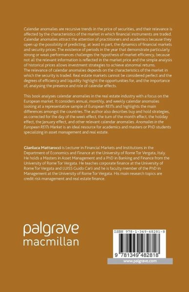 This book analyses calendar anomalies in the real estate industry with a focus on the European market. It considers annual, monthly and weekly calendar anomalies looking at a representative sample of European REITs and highlights the main differences amongst the countries.