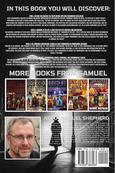 ¿¿¿¿ **Unlock the Mysteries of the Unexplained!** ¿¿¿¿ Are you ready to dive deep into the world of UFOs, UAPs, and supernatural phenomena that defy explanation? *Anomalous Phenomena: UAP, UFO, High Strangeness, and Supernatural Encounters* is the ultimate collection for anyone fascinated by the strange, the mysterious, and the otherworldly. This 4-book bundle is your gateway to exploring the most baffling and captivating cases of the unknown. Whether you're a believer, a skeptic, or just curious about what's out there, this bundle has everything you need to venture beyond the limits of conventional knowledge. **¿¿¿¿ Book 1: Beyond the Horizon: The Truth Behind UAPs and Government Disclosure** With governments around the world releasing unprecedented information on UAPs (formerly known as UFOs), the mystery of what's really happening in our skies is more compelling than ever. *Beyond the Horizon* takes you inside the latest revelations and explores how official disclosures are changing the way we look at these aerial phenomena. This book digs into declassified documents, military encounters, and the scientific implications of these strange sightings. Are we on the brink of discovering extraterrestrial life, or is there something else at play? ¿¿¿¿ **¿¿¿¿ Book 2: Shadows in the Sky: A Deep Dive into UFO Sightings and Encounters** For decades, sightings of UFOs have sparked endless fascination and debate. In *Shadows in the Sky*, you'll explore some of the most documented and mysterious UFO sightings from around the world. From the famous Roswell incident to lesser-known but equally strange encounters, this book takes you through eyewitness reports, military investigations, and unexplained aerial phenomena that have puzzled experts for years. Ready to unravel the truth? ¿¿¿¿¿¿¿¿ **¿¿¿¿ Book 3: The Strangest Encounters: Stories of High Strangeness in Paranormal Research** Prepare to be amazed-and perhaps a little unsettled-as *The Strangest Encounters* delves into cases of high strangeness that go beyond simple UFO sightings. These are stories where reality itself seems to bend. From bizarre creatures to time distortions and interactions with the unexplained, this book challenges the boundaries of what's possible. High strangeness is where the paranormal and the extraordinary collide-enter if you dare! ¿¿¿¿¿ **¿¿¿¿ Book 4: Beyond the Veil: Supernatural Beings, Hauntings, and Otherworldly Forces** Explore the darker side of the unknown with *Beyond the Veil*, a deep dive into supernatural beings, ghostly apparitions, and otherworldly forces. This book investigates haunted places, cryptid sightings, and encounters with beings that defy logical explanation. Are these stories folklore, or is there more to the world around us than meets the eye? *Beyond the Veil* challenges your perception of reality with accounts of the paranormal that will leave you questioning what's truly possible. ¿¿¿¿¿¿¿¿ **Order Your Copy Today** and take a bold step into the unknown! This 4-book bundle is the ultimate guide for anyone captivated by UAPs, UFOs, and the paranormal. Don't miss your chance to explore the boundaries of reality! ¿¿¿¿¿¿¿¿