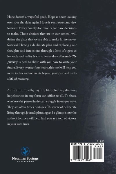 Hope doesn’t always feel good. Hope is never looking over your shoulder again. Hope is your expectant view forward. Every twenty-four hours, we have decisions to make. These choices that are in our control will define the place that we are able to make future moves forward. Having a deliberate plan and exploring our thoughts and intensions through a lens of rigorous honestly and reality leads to better days. Anomaly: The Journey is here to share with you how to write your future. Every twenty-four hours, this tool will help you move inches and moments beyond your past and on to a life of recovery. Addiction, death, layoff, life change, disease, hopelessness in any form can afflict us all. To those who love the person in despair struggle in unique ways. They are often times hostages. This view of deliberate living through journal/planning and a glimpse into the author’s journey will help lead you as a tool of victory in your own lives.