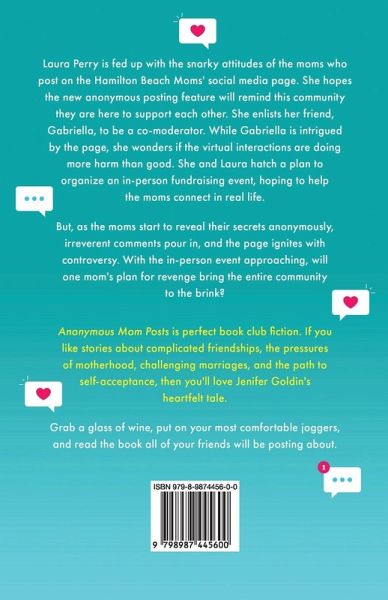 Every mom has a secret. Will anonymous social media posts expose hidden truths and burn down the internet? Snarky comments and rude behavior. Laura Perry is fed up. She hopes the new anonymous posting feature on her social media page for moms will remind everyone to support each other. But things go horribly wrong when "perfect" moms reveal their secrets anonymously. Desperate to fix the chaos, Laura plans an in-person event. But as it approaches, one post ignites a firestorm of controversy. Can Laura's event help the moms heal or will one mom's plan for revenge destroy the picture-perfect community? Anonymous Mom Posts is perfect book club fiction. If you like stories about complicated friendships, the pressures of motherhood, challenging marriages, and the path to self-acceptance, then you'll love Jenifer Goldin's heartfelt tale. Grab a glass of wine, put on your most comfortable joggers, and buy the book all your friends will be posting about.