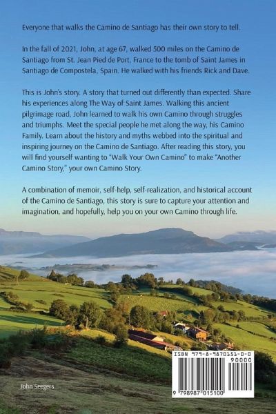 Everyone that walks the Camino de Santiago has their own story to tell.In the fall of 2021, John, at age 67, walked 500 miles on the Camino de Santiago from St. Jean Pied de Port, France to the tomb of Saint James in Santiago de Compostela, Spain. He walked with his friends Rick and Dave.This is John's story. A story that turned out differently than expected. Share his experiences along The Way of Saint James. Walking this ancient pilgrimage road, John learned to walk his own Camino through struggles and triumphs. Meet the special people he met along the way, his Camino Family. Learn about the history and myths webbed into the spiritual and inspiring journey on the Camino de Santiago. After reading this story, you will find yourself wanting to "Walk Your Own Camino" to make "Another Camino Story," your own Camino Story.A combination of memoir, self-help, self-realization, and historical account of the Camino de Santiago, this story is sure to capture your attention and imagination, and hopefully, help you on your own Camino through life.