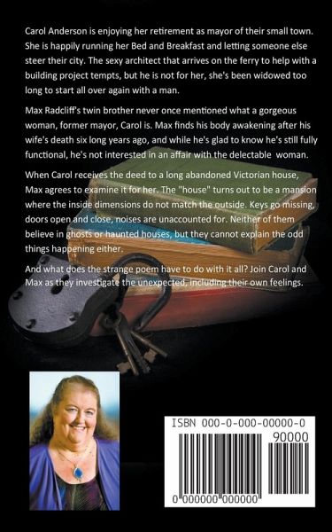 Mystery and Romance combine to give this couple a second chance to fall in love. Carol Anderson is shocked when a simple handshake sends sparks flying along her nerve endings. She never thought to feel that kind of attraction again after her husband died many years ago. The sexy architect that arrives on the ferry to help with a building project tempts, but he is not for her, she's been widowed too long to start all over again with a man. Max Radcliff did not expect the former mayor to be such a gorgeous woman. Carol Anderson sparks a life into his body, awakening it again after his wife's death five long years ago. And while he's glad to know he's still fully functional, he's not interested in an affair with the delectable woman. When Carol receives the deed to a long abandoned Victorian house, Max agrees to examine it for her. The "house" turns out to be a mansion where the inside dimensions do not match the outside. Keys go missing, doors open and close, noises are unaccounted for. Neither of them believe in ghosts or haunted houses, but they cannot explain the strange things happening. And what does the odd poem have to do with it all? Join Carol and Max as they investigate the unexpected, including their own feelings.