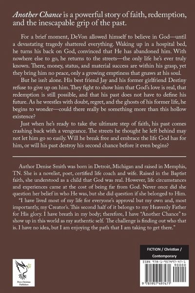 Another Chance is a powerful story of faith, redemption, and the inescapable grip of the past. For a brief moment, a young man allowed himself to believe in God-until a devastating tragedy shattered everything. Waking up in a hospital bed, he turns his back on faith, convinced that God has abandoned him. With nowhere else to go, he returns to the streets-the only life he's ever truly known. There, money, status, and material success are within his grasp, yet they bring him no peace, only a growing emptiness that gnaws at his soul. But he isn't alone. His best friend and former girlfriend refuse to give up on him. They fight to show him that God's love is real, that redemption is still possible, and that his past does not have to define his future. As he wrestles with doubt, regret, and the ghosts of his former life, he begins to wonder-could there really be something more than this hollow existence? Just when he's ready to take the ultimate step of faith, his past comes crashing back with a vengeance. The streets he thought he left behind may not let him go so easily. Will he break free and embrace the life God has for him, or will his past destroy his second chance before it even begins?