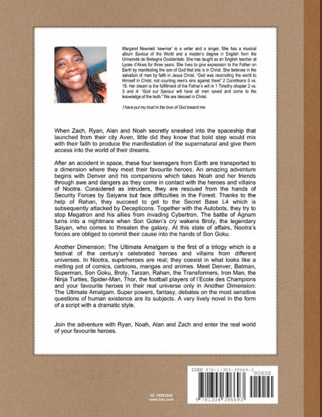 After an accident in space, Alan, Noah, Zach and Ryan are transported to a world where they meet their favorite heroes. An amazing adventure begins with Denver, the dinosaur. Noah and her friends are taken through wonders and dangers as they encounter the heroes and villains of Nootra. Considered as intruders by Nootra Security Forces, the Saiyans come to their rescue, but they all face difficulties in the Forest. Thanks to Rahan and his comrades, they manage to reach Secret Base L4, which is then attacked by Decepticons. While Autobots and X-Men try to prevent Megatron and some super villains from conquering Cybertron, the Battle of Agnam turns into a nightmare when Goten's cry awakens the Legendary Super Saiyan Broly, who comes to threaten the galaxy. Following this turn of events, Nootra forces are obliged to commit their cause in the hands of Son Goku. Another Dimension: The Ultimate Amalgam is the first in a series celebrating illustrious heroes and villains. It is a project of writings and songs.