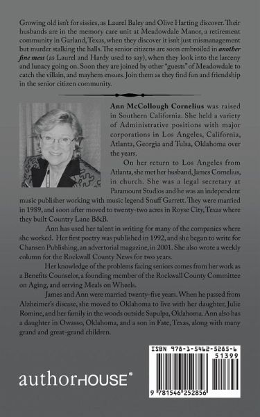 Growing old isnt for sissies, as Laurel Baley and Olive Harting discover. Their husbands are in the memory care unit at Meadowdale Manor, a retirement community in Garland, Texas, when they discover it isnt just mismanagement but murder stalking the halls. The senior citizens are soon embroiled in another fine mess (as Laurel and Hardy used to say), when they look into the larceny and lunacy going on. Soon they are joined by other guests of Meadowdale to catch the villain, and mayhem ensues. Join them as they find fun and friendship in the senior citizen community.