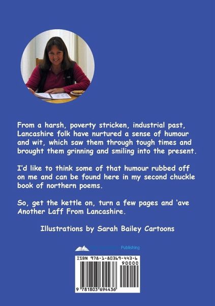 From a harsh, poverty stricken, industrial past, Lancashire folk have nurtured a sense of humour and wit, which saw them through tough times and brought them grinning and smiling into the present. I'd like to think some of that humour rubbed off on me and can be found here in my second chuckle book of northern poems. So, get the kettle on, turn a few pages and 'ave Another Laff From Lancashire.
