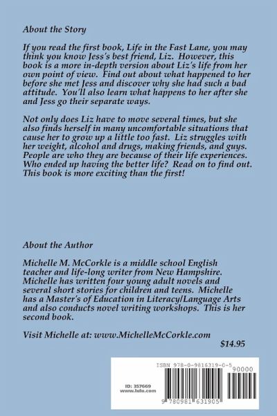 The second book to Life in the Fast Lane: Not only does Liz have to move several times, but she also finds herself in many uncomfortable situations that cause her to grow up a little too fast. Liz struggles with her weight, alcohol and drugs, making friends, and guys.