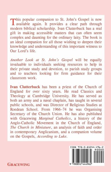 This popular companion to St John's Gospel is now available again. It provides a clear path through modern biblical scholarship. Ivan Clutterbuck has a real gift imn making accessible matters that can often seem complex and daunting for the ordinary laity. The book is an ideal companion for all those wishing to deepen their knowledge and understanding of this important witness to Our Lord's life. Another Look at St Johns's Gospel will be equally invaluable to individuals seeking resources to help in their private study and devotion, to parish study groups and to teachers looking for firm guidance for their classroom work. Ivan Clutterbuck has been a priest of the Church of England for over sixty years. He read Classics and Theology at Cambridge University. He has served as both an army and a naval chaplain, has taught in several public schools, and was Director of Religious Studies at Roedean School. From 1966 -74 he was Organising Secretary of the Church Union. He has also published with Gracewing Marginal Catholics, a history of the Anglo-Catholic Movement in the Church of England, The Church in Miniature, an analysis of faith and order in contemporary Anglicanism, and a companion volume on the Gospels, According to Luke.