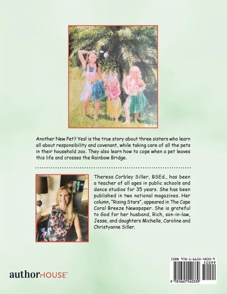 Another New Pet? Yes! is the true story about three sisters who learn all about responsibility and covenant, while taking care of all the pets in their household zoo. They also learn how to cope when a pet leaves this life and crosses the Rainbow Bridge.