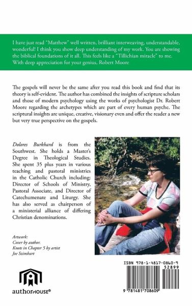 I have just read "Matthew" well written, brilliant interweaving, understandable, wonderful! I think you show deep understanding of my work. You are showing the biblical foundations of it all. This feels like a "Tillichian miracle" to me. With deep appreciation for your genius, Robert Moore The gospels will never be the same after you read this book and find that its theory is self-evident. The author has combined the insights of scripture scholars and those of modern psychology using the works of psychologist Dr. Robert Moore regarding the archetypes which are part of every human psyche. The scriptural insights are unique, creative, visionary even and offer the reader a new but very true perspective on the gospels.