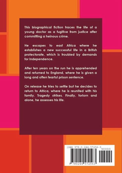 This biographical fiction traces the life of a young doctor as a fugitive from justice after committing a heinous crime. He escapes to east Africa where he establishes a new successful life in a British protectorate, which is troubled by demands for independence. After ten years on the run he is apprehended and returned to England, where he is given a long and often fearful prison sentence. On release he tries to settle but he decides to return to Africa, where he is reunited with his family. Tragedy strikes. Finally, forlorn and alone, he assesses his life.