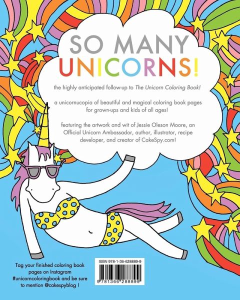 Gather up your crayons or colored pencils, and make sure you've got all the colors of the rainbow! This is the long awaited follow up coloring book to illustrator Jessie Oleson Moore's first volume, *The Unicorn Coloring Book*. Featuring a myriad of 24 magical unicorn illustrations, this book is designed for grown-ups but suitable for kids of all ages. It features the witty and whimsical artwork of Jessie Oleson Moore, an official Unicorn Ambassador, author, illustrator, recipe developer, yoga instructor (really), and creator of the popular dessert lifestyle website CakeSpy.com.