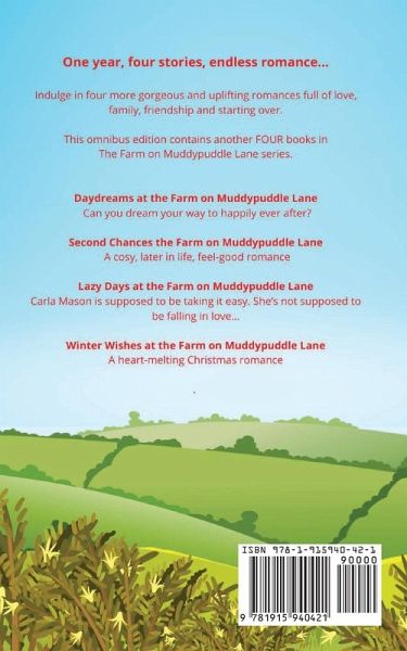Indulge in four more gorgeous and uplifting romances full of love, family, friendship and starting over. This omnibus edition contains another FOUR books in The Farm on Muddypuddle Lane series. Daydreams at the Farm on Muddypuddle Lane Can you dream your way to happily ever after? Second Chances the Farm on Muddypuddle Lane A cosy, later in life, feel-good romance Lazy Days at the Farm on Muddypuddle Lane Carla Mason is supposed to be taking it easy. She's not supposed to be falling in love... Winter Wishes at the Farm on Muddypuddle Lane A heart-melting Christmas romance If you adore a cosy romantic comedies, set in a village in the heart of the English countryside, you'll love this delightfully heartwarming and wholesome series.