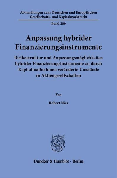 Hybride Finanzierungsinstrumente können aufgrund der Vereinigung von Eigen- und Fremdkapitalkomponenten durch Kapitalmaßnahmen in Aktiengesellschaften beeinflusst werden. Hierbei kommt es weniger auf die konkrete Einordnung des hybriden Finanzierungsinstruments als vielmehr auf die Komponenten, welche ein solchen beinhaltet, an. Deshalb ist eine abstrakte Betrachtung möglich. Eine solche hat nicht in der Rückschau zu erfolgen, sondern im Moment der Vornahme der Kapitalmaßnahme. Daher lässt sich der Einfluss auf ein hybrides Finanzierungsinstrument durch eine Kapitalmaßnahme anhand des Einflusses auf die konkrete Risikoverteilung des hybriden Finanzierungsinstruments messen, was auch durch das geltende Aktienrecht gestützt wird. Eine Anpassung an die veränderten Umstände hat dabei grundsätzlich stattzufinden. Hierbei sind jedoch die verschiedenen Gestaltungsvarianten hybrider Finanzierungsinstrumente zu beachten, welche auch die Art und Weise der Anpassung beeinflussen.