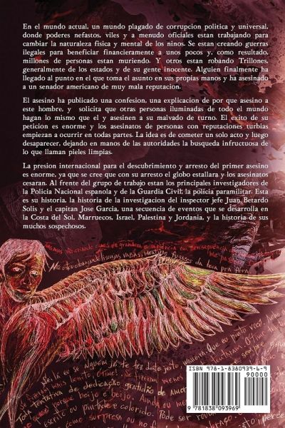 En el mundo actual de corrupción política y universal, donde poderes nefastos y a menudo oficiales están trabajando para cambiar la naturaleza física y mental de los niños. Se están creando guerras ilegales para mejorar financieramente a unos pocos y, como resultado, millones de personas están muriendo. Y otros están robando billones, generalmente de los estados y de su gente inocente. Alguien finalmente ha llegado al punto en el que toma el asunto en sus manos y ha asesinado a un senador estadounidense de muy mala reputación. El asesino ha publicado una confesión, una explicación de por qué asesinó a este hombre, y provoca que otras personas iluminadas de todo el mundo hagan lo mismo que él y asesinen al malvado local. El éxito de su petición es enorme y los asesinatos de personas con reputaciones turbias empiezan a ocurrir en todas partes. La idea es cometer un solo acto y luego desaparecer, dejando en manos de las autoridades la búsqueda infructuosa de lo que llaman pieles limpias. La presión internacional para el descubrimiento y arresto del primer asesino es enorme, ya que se cree que con su arresto el globo estallará y los asesinatos cesarán. Al frente del grupo de trabajo están los principales investigadores de la Policía Nacional española y de la Guardia Civil, la policía paramilitar. Esta es su historia, la historia de la investigación del inspector jefe Juan Betardo Solís y el capitán José García, una historia que se desarrolla en la Costa del Sol, Marruecos, Israel, Palestina y Jordania, y la historia de sus muchos sospechosos.