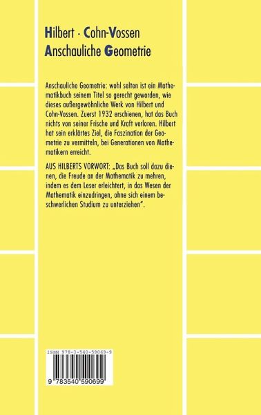 Anschauliche Geometrie - wohl selten ist ein Mathematikbuch seinem Titel so gerecht geworden wie dieses außergewöhnliche Werk von Hilbert und Cohn-Vossen. Zuerst 1932 erschienen, hat das Buch nichts von seiner Frische und Kraft verloren. Hilbert hat sein erklärtes Ziel, die Faszination der Geometrie zu vermitteln, bei Generationen von Mathematikern erreicht. Aus Hilberts Vorwort: "Das Buch soll dazu dienen, die Freude an der Mathematik zu mehren, indem es dem Leser erleichtert, in das Wesen der Mathematik einzudringen, ohne sich einem beschwerlichen Studium zu unterziehen".